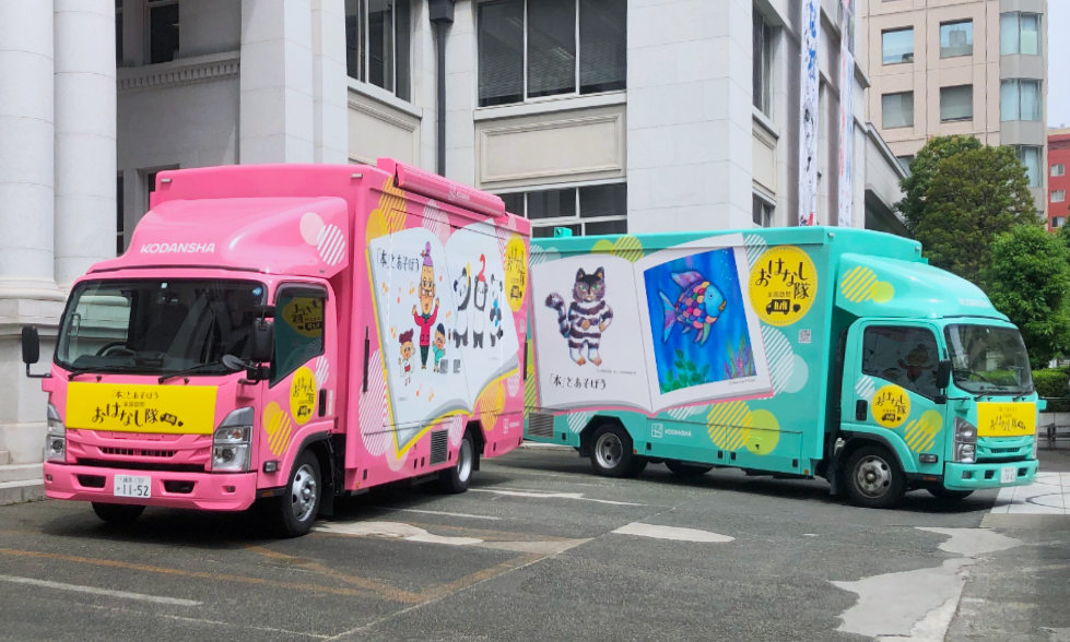 载有大约550本绘本的移动展示车走遍全国47个都道府县,走访幼儿园、托儿所、小学、图书馆和书店等,举办绘本阅览、连环画表演和绘本讲故事会。
